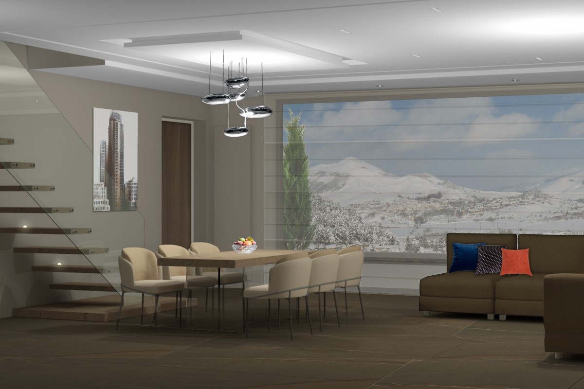 Piano terra di circa m² 45 composto da ampio salone living con cucina a vista e bagno di servizio. Gli ambienti, rifiniti con pavimenti in marmo o parquet, si affacciano attraverso una vetrata di 5 metri su un magnifico terrazzo panoramico di circa m² 30: il luogo ideale per colazioni al sole, cene con gli amici o momenti di puro relax ammirando le montagne.