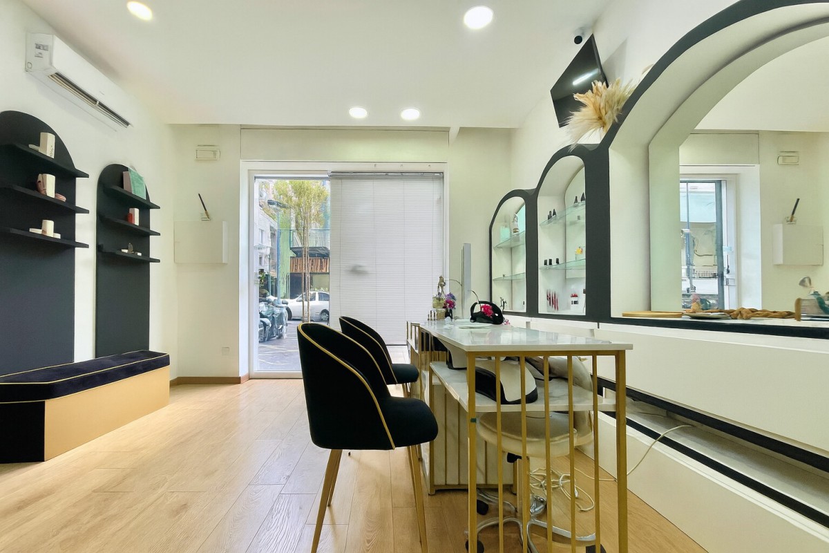vetrina su strada, postazioni manicure dal design ricercato, con specchi